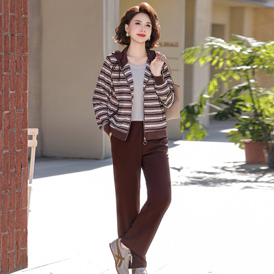 中老年女士休闲两件套套装妈妈装拼接条纹款衣服中年休闲运动服女