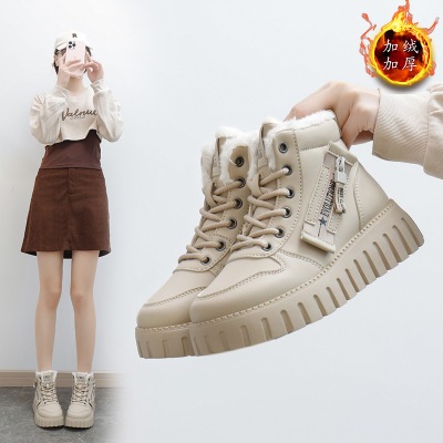 女式棉鞋冬季新款马丁靴女圆头厚底加绒保暖女鞋反绒靴WS820