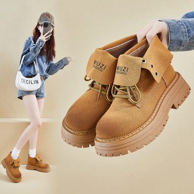 马丁靴女年新款秋季英伦风厚底增高韩版休闲复古工装单靴