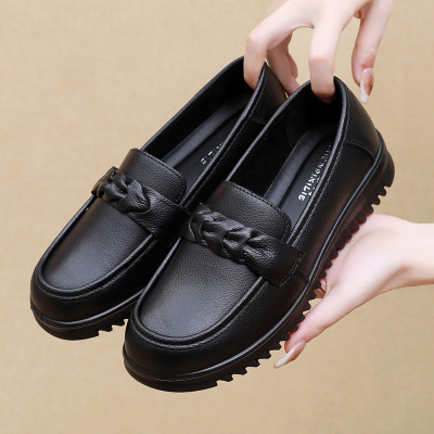 热卖中老年妈妈鞋牛皮女式单鞋休闲舒适四季单鞋