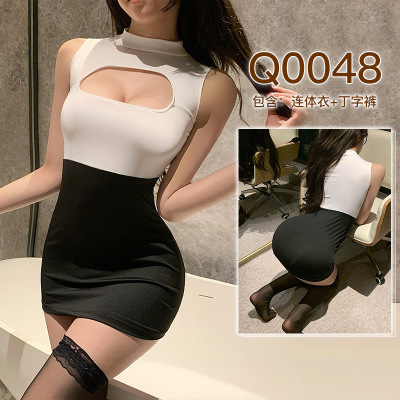 九里晴川内衣性感透视黑白镂空连衣裙女修身免脱调味成人用品 Q0048 均码
