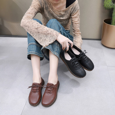 秋季新款手工缝制女单鞋头层牛皮妈妈鞋系带软底鞋真皮四季鞋