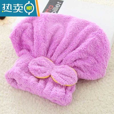 敬平蝴蝶结干发帽加厚干发巾女吸水包头巾女可爱浴帽洗头速干毛巾 紫色