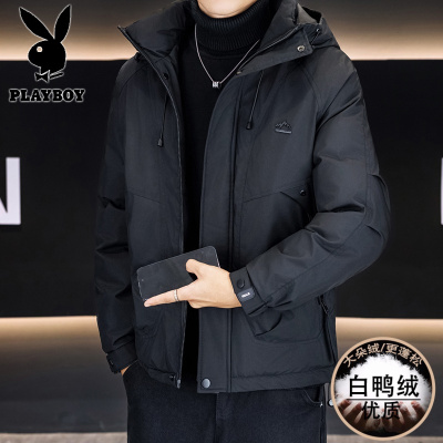冬装羽绒服男2024新款中青年保暖冬装连帽短款学生防寒服外套不漏绒冬季90白鸭绒羽绒服男士可脱卸帽保暖加厚外套