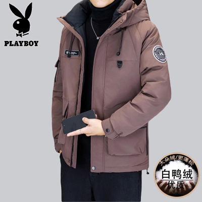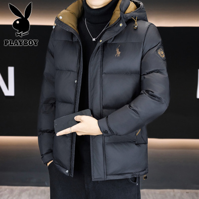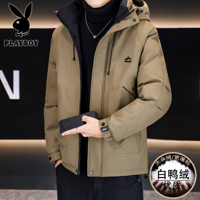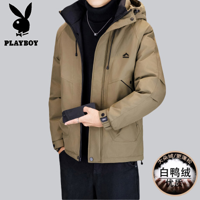 花花公子新款高品质冬季新款户外防寒服三防连帽加绒加厚羽绒服男装夹克外套