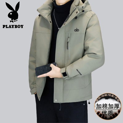 花花公子新款高品质冬季新款户外防寒服三防连帽加绒加厚羽绒棉服男装夹克外套