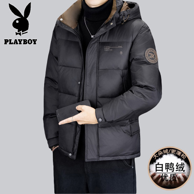 花花公子新款高品质冬季新款户外防寒服三防连帽加绒加厚羽绒服男装夹克外套