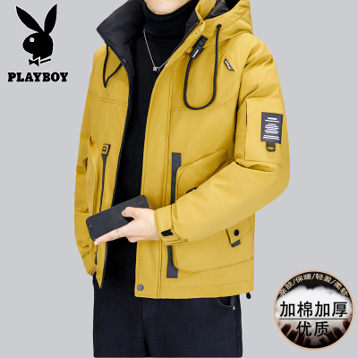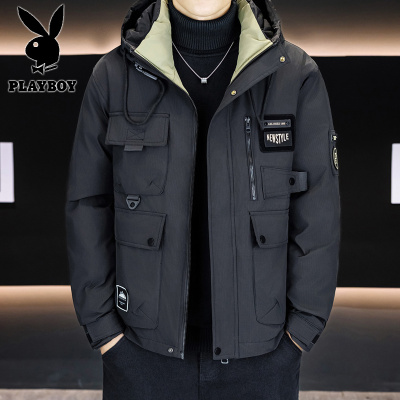 花花公子新款高品质冬季新款户外帅气防寒服三防连帽加厚羽绒棉男装夹克外套