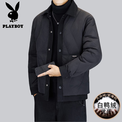 花花公子新款高品质男士翻领帅气休闲冬季保暖羽绒服外套防寒服90%白鸭绒