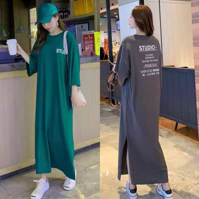 韩国大码T恤女装胖mm懒人长款短袖宽松过膝大码连衣裙夏季长裙子