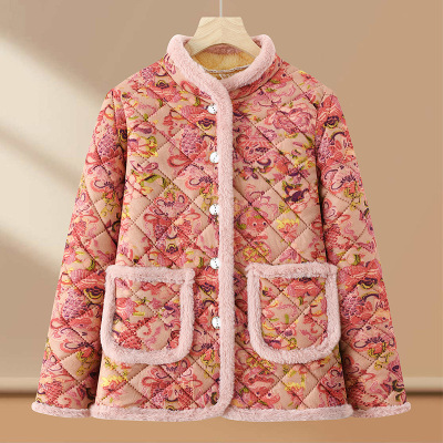 时尚女装奶奶装冬季保暖棉衣加绒加厚女士休闲老太太棉服60岁冬装