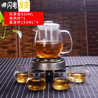 三维工匠玻璃泡茶壶家用可高温煮茶器过滤加厚烧水泡茶器茶壶电陶炉煮套装 直身泡茶壶600+电热炉茶具