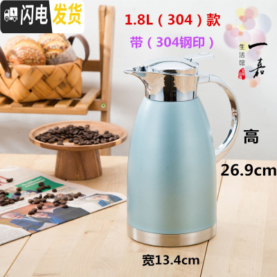 三维工匠304不锈钢保温壶家用 真空保温水壶大容量开热水暖瓶热水壶罗马壶 304款卡其蓝1.8(有304钢印)