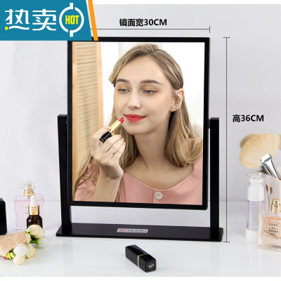 敬平化妆镜台式led灯大号补光梳妆镜桌面ins家用带灯精致美妆镜子灯泡便携式用镜 酷黑中号不带灯