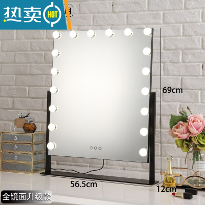 敬平化妆镜台式led带灯泡网红桌面大号家用卧室镜子便携ins梳妆镜子便携式用镜 18灯黑色全镜面+插电款 3色无极调光