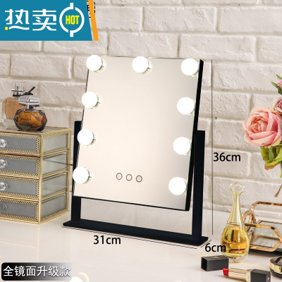 敬平化妆镜台式led带灯泡网红桌面大号家用卧室镜子便携ins梳妆镜子便携式用镜 9灯黑色全镜面+插电款 3色无极调光