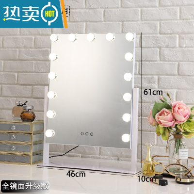 敬平化妆镜台式led带灯泡网红桌面大号家用卧室镜子便携ins梳妆镜子便携式用镜 15灯白色全镜面+插电款 3色无极调光
