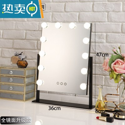 敬平化妆镜台式led带灯泡网红桌面大号家用卧室镜子便携ins梳妆镜子便携式用镜 12灯黑色全镜面+插电款 3色无极调光