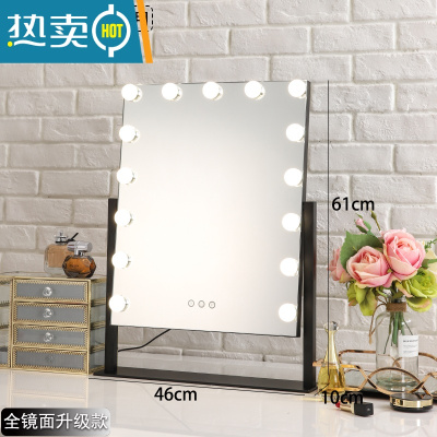 敬平化妆镜台式led带灯泡网红桌面大号家用卧室镜子便携ins梳妆镜子便携式用镜 15灯黑色全镜面+插电款 3色无极调光