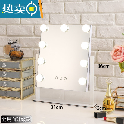 敬平化妆镜台式led带灯泡网红桌面大号家用卧室镜子便携ins梳妆镜子便携式用镜 12灯白色全镜面+插电款 3色无极调光