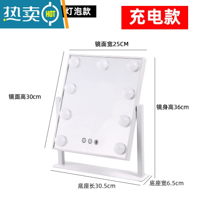 敬平化妆镜台式led灯镜子梳妆镜灯泡大号家用网红宿舍桌面补光镜便携式用镜 [旋转]横款白色50*42插电+3色