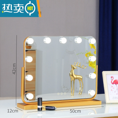 敬平化妆镜台式led灯镜子梳妆镜灯泡大号家用网红宿舍桌面补光镜便携式用镜 [旋转]横款金色50*42插电+3色