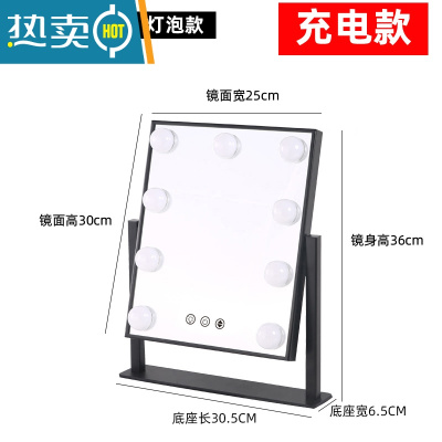 敬平化妆镜台式桌面led带灯补光梳妆镜旋转网红ins风化妆镜智能家用便携式用镜 旋转款半圆灯泡60直径(黑色充电款) 旋