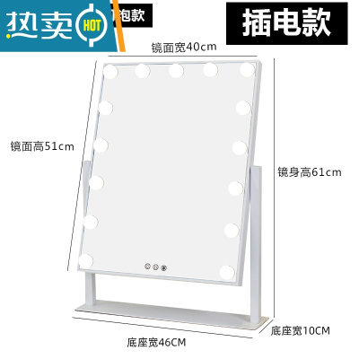 敬平化妆镜台式led灯大号补光梳妆镜桌面ins家用带灯精致美妆镜子灯泡便携式用镜 白色15灯插电款(三光色+无极调光)