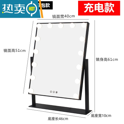 敬平化妆镜台式led灯大号补光梳妆镜桌面ins家用带灯精致美妆镜子灯泡便携式用镜 酷黑15灯充电款(三光色+无极调光)