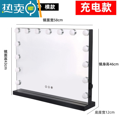 敬平化妆镜台式led灯大号补光梳妆镜桌面ins家用带灯精致美妆镜子灯泡便携式用镜 酷黑15灯充电横款(三光色+无极调光)