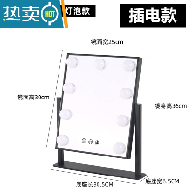 敬平化妆镜台式桌面led带灯补光梳妆镜旋转网红ins风化妆镜智能家用便携式用镜 旋转款半圆灯泡50直径(黑色插电款) 旋