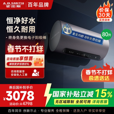 【史密斯(A.O.SMITH)】金圭世纪传承!以旧换新享受优惠,抢购AO史密斯佳尼特60升电热水器