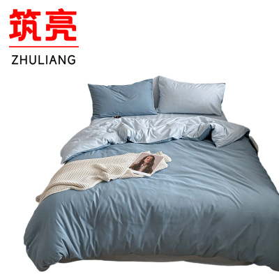 纯色四件套ins风床单被套床上四件套宿舍三件套床上用品春夏秋冬季
