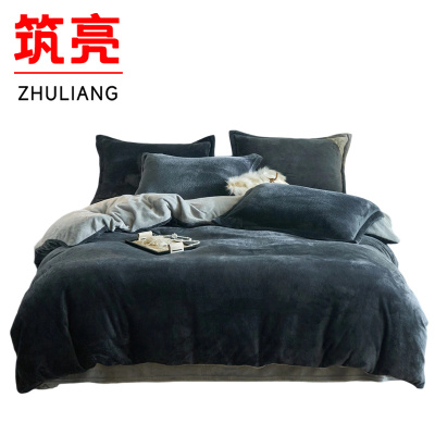 []四件套纯色刺绣水洗棉被单宿舍被套冬季床单三件套床上用品春夏款薄春夏秋冬季