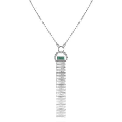 GUESS女士流行绿石银色流苏Y型项链百搭潮款饰品
