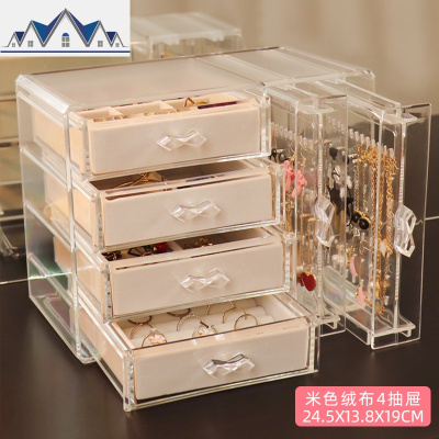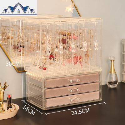 首饰收纳盒桌面耳环耳钉项链整理挂架梳妆台透明防尘绒布饰品盒子 三维工匠