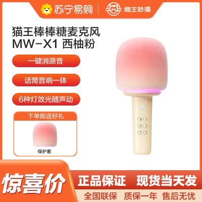 猫王灵感棒棒糖麦克风唱歌儿童话筒音响一体无线蓝牙K歌家庭用KTV 西柚粉