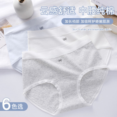 A类纯棉女士内裤 纯棉中腰简约内裤女 中腰全棉加长裆女内裤