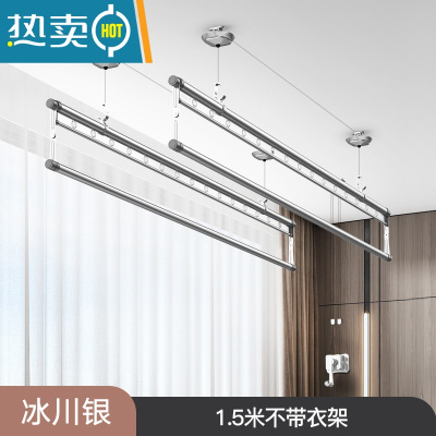敬平升降晾衣架阳台手摇式晒衣双杆家用顶装晾衣杆四杆凉衣折叠晒被架 冰川银四杆1.5米 大