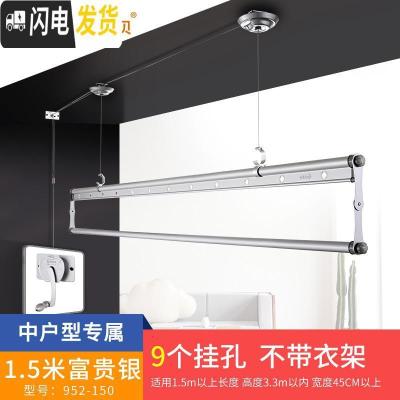 三维工匠 升降晾衣架 双杆阳台晒衣服架手摇三杆晾衣杆室外手动凉衣架 A1-单杆[富贵银]1.5米-