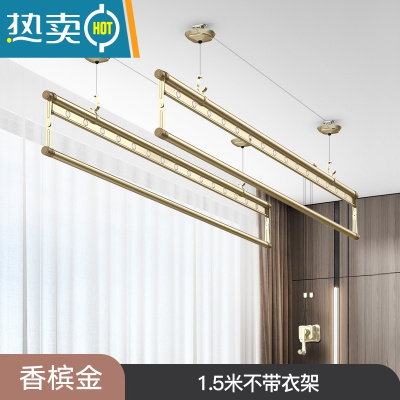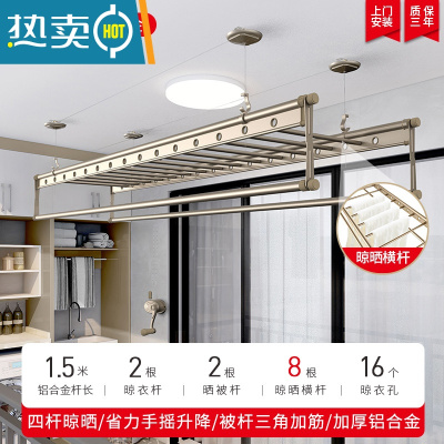 敬平升降晾衣架阳台手摇式晒衣双杆家用顶装晾衣杆四杆凉衣折叠晒被架 香槟金四杆1.5米 大