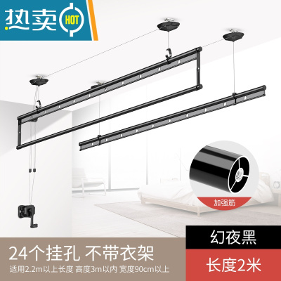 敬平阳台升降晾衣架手摇双杆式晾衣杆顶装三杆手动家用晒衣架凉衣器 幻夜黑三杆2米不含衣架 大