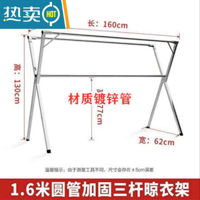 三维工匠晾衣架落地阳台晒衣杆卧室内晒架简易折叠单杆式家用凉挂衣服架子