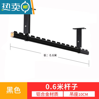 敬平晾衣杆阳台顶装固定单杆晾衣架挂衣杆铝合金凉衣架吊顶式加粗家用 黑色-0.6米单根 支架10cm