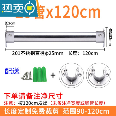 敬平加厚304不锈钢打孔晾衣杆阳台固定晒衣杆凉衣挂衣单杆晾衣架百顺 25管长1.2米+开口座