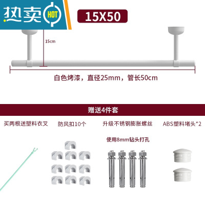 敬平白色阳台晾衣杆顶装固定式不锈钢凉衣架固定座晾衣架单杆晒衣杆 白色50cm-15cm高