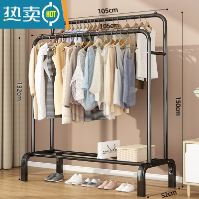 敬平简易晾衣架落地折叠卧室单杆室内晾衣杆挂衣架阳台晒衣服架子家用 105CM[黑色双杆]单层置物