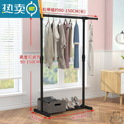 敬平晾衣架落地简易凉衣杆家用卧室内单杆式晒衣架折叠阳台挂衣服架子 大号伸缩(黑色)-无轮子 中晾衣杆
