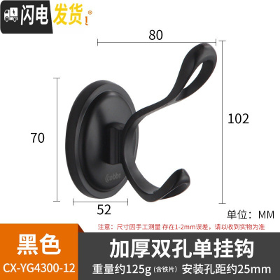 三维工匠衣钩家用壁挂衣帽钩卧室衣服单钩小挂钩卫生间浴室挂衣钩单个 YG4300黑色