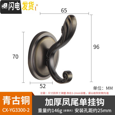 三维工匠衣钩家用壁挂衣帽钩卧室衣服单钩小挂钩卫生间浴室挂衣钩单个 YG3300青古铜